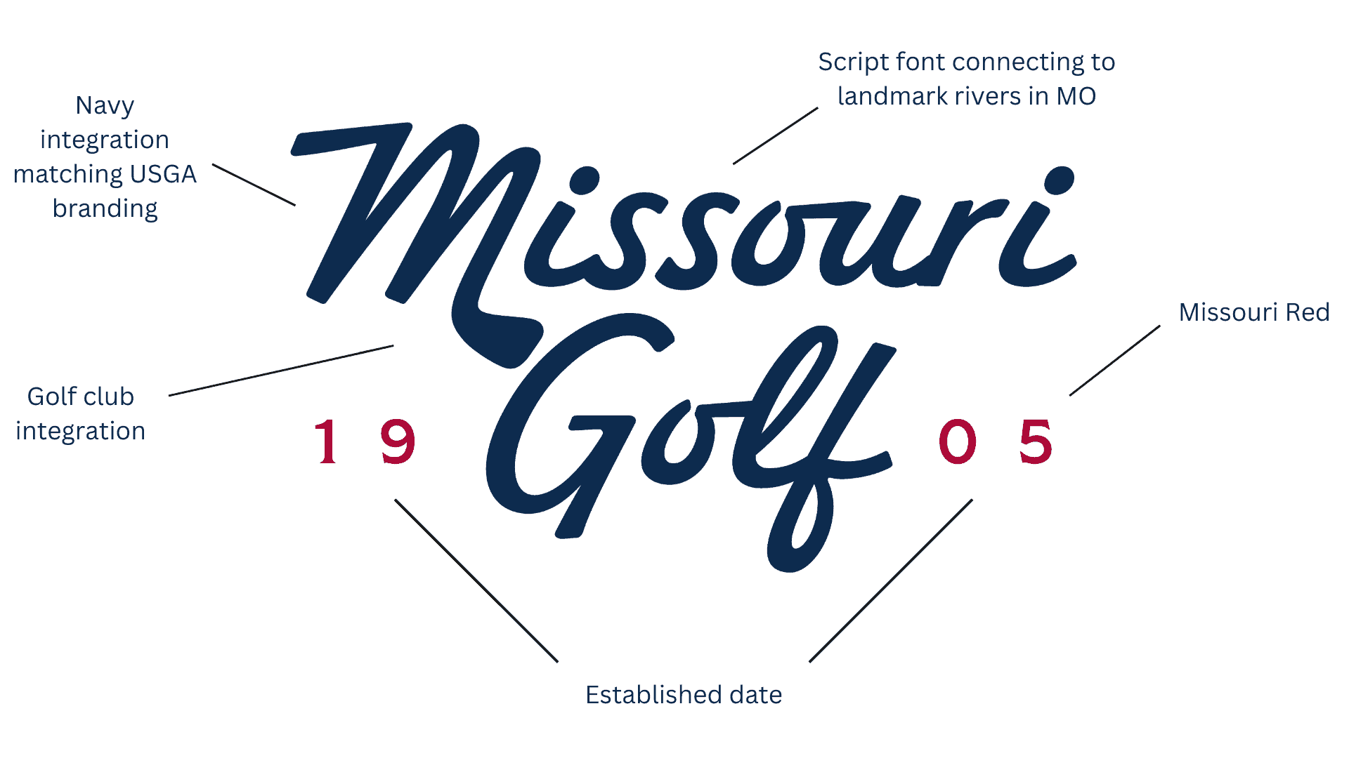 Navy was chosen as the core color of the brand, connecting Missouri Golf to the national governing body of golf, the USGA. Missouri Red is used as the secondary color, representing pride in the state’s own unique color.