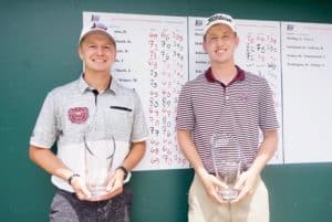 Missouri State Bears’ golfers Kory Franks of Jefferson City and Brad Carpenter of Washington took the first place title today in the Championship Flight. The partners came out on top with an impressive overall score of 128 (65-63). Franks and Carpenter kicked off the day with one eagle, two birdies and five pars on the first eight holes and double bogeyed on the ninth. Their turning point came on the back nine when they managed to birdie the final six holes to earn the first place ranking.
